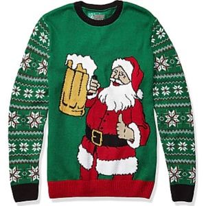 Drink responsibly this holiday season in this men's Beer Santa Ugly Christmas Sweater. In size small.