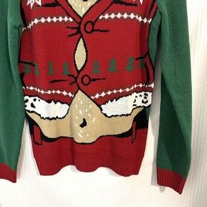Mens Ugly Christmas Sweater Fat Santa Belly in Vest Pullover Size Small
