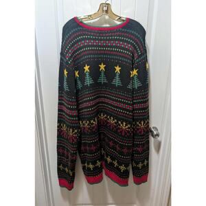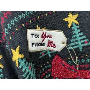 The Men's Ugly Christmas Sweater by Holiday Time in size 3XL features a festive Christmas tree pattern with a gold gift bag front pocket, making it a perfect addition to your holiday wardrobe. This multicolor acrylic sweater with long sleeves and a crew neck is ideal for both party and casual occasions, adding a touch of fun to your winter season. The pullover style and regular fit ensure comfort and style during the festive season.
