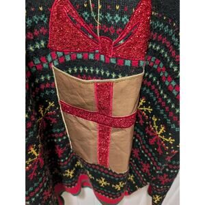 Men's Ugly Christmas Sweater Gold Gift Bag Front Pocket Size 3XL Holiday Time