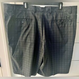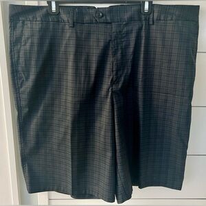Barely worn, like new! Color is navy blue plaid. 100% polyester with deep side pockets and two back button pockets with belt loops. Big & Tall size.