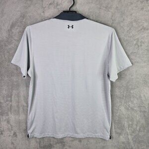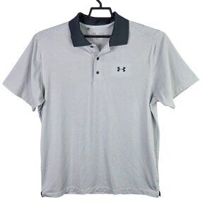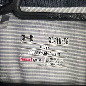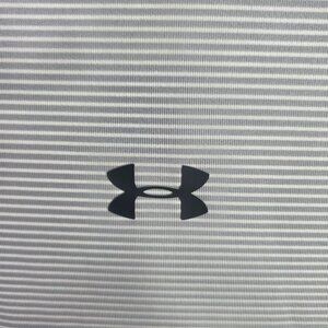 Mens Under Armour Gray & White Striped Loose Fit Polo Shirt Short Sleeve Size XL