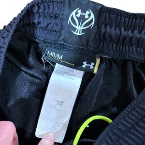 Men's Under Armour Loose Fit Black & Neon Green Athletic Shorts, Size MD/M