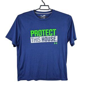 Mens Under Armour Loose Fit Blue Active T Shirt Short Sleeve Polyester Size XL