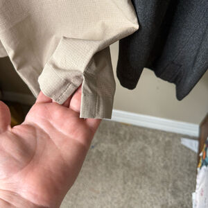 Listing is for both pants. Bundle of one khaki and one charcoal grey/black pant. Completely preforated for comfortable ventilation. Great condition