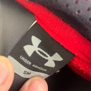 Men's Under Armour Pull Over Hoodie Embroidered Patch Letters Sz SM Red