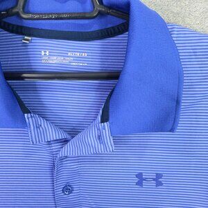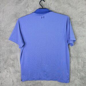 Mens Under Armour Purple Striped Loose Polo Shirt Short Sleeve Polyester Size XL