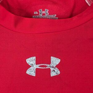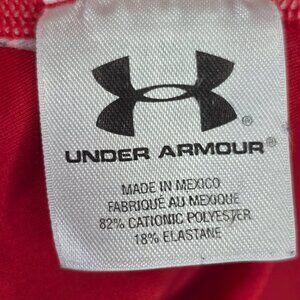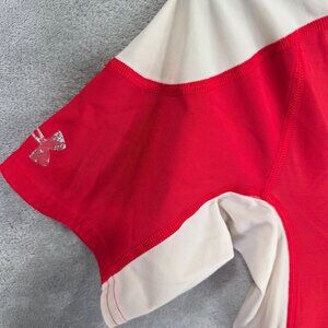 Mens Under Armour Red & White Compression Shirt Short Sleeve Polyester Size XL