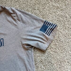 Men's Under Armour Short Sleeve Tee, M, EUC, Gray with Flag/Freedom