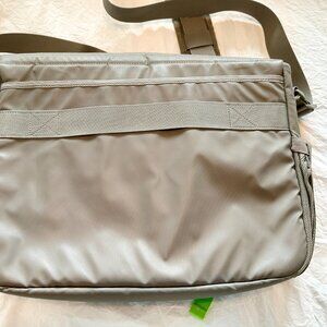 amazing weather resistant messenger bag featuring a built in laptop sleeve, clasp closures on the front to keep everything inside secure, lots of pockets, and a padded shoulder strap.