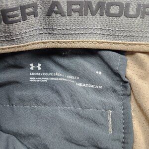 Mens Under Armour size 40 Vented Beige Loose Heat Gear Flat Front Golf Shorts