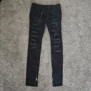 Men's or unisex pants. Skinny regular fit. Ripped details. Zipper ankle. Elastic waist with toe for easy fit