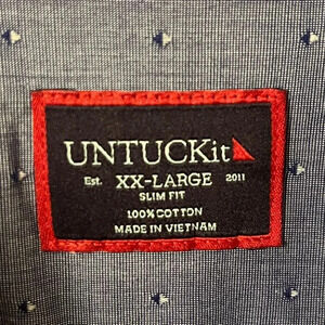 Introducing this stylish Men’s Untuckit Button Down Shirt in Size XXL! Crafted from 100% cotton, this blue shirt is not only comfortable but also versatile. It's designed to be worn untucked, giving you a relaxed yet polished look. In good condition, it's perfect for any casual or semi-formal occasion. See included pictures for measurements.