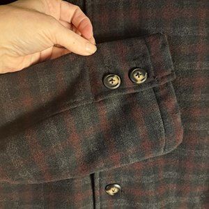 Men's Utex Plaid Button Front Wool Blend Coat Shacket Sz Large