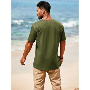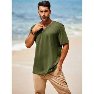 Mens V Neck Henley Shirt Short Sleeve Casual Summer Beach Button Tee Top