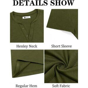 Basic T-Shirt: Men's casual regular fit henley shirt with simple design, features v neck, two buttons, short sleeve, solid color, precise stitching, fashion and versatile
