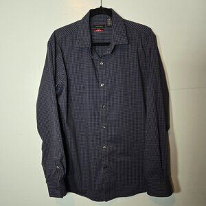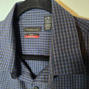 Men's VAN HEUSEN FLEX NO-IRON STRETCH DRESS SHIRT LARGE 18-18.5 Dark Blue Check Slim Fit