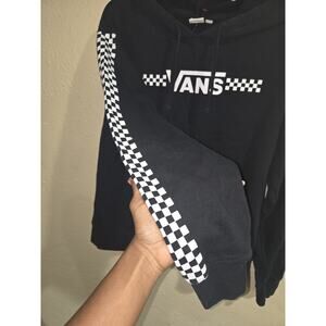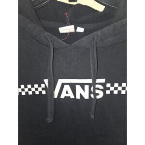 Mens VANS Black Checkboard Sleeves Logo Soft Fleece Pullover Hoodie Top Medium M