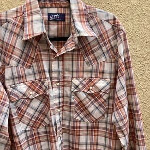 Men's VTG Levi's Shirt Multicolor Plaid Button-Down L Snap Pocket Classic Iconic. Made in USA.