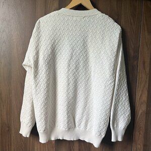 Men’s VTG White Cable Knit Cardigan sz M Cotton US Made Fisherman Preppy Y2K 90s