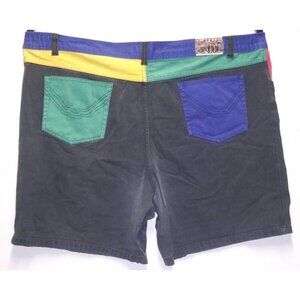 Zeppelin VTG Mens Denim Shorts Size 54 COLORBLOCK MULTICOLOR BOHO FESTIVAL HIPPIE rare HTF/ hard to find thick black blue red green yellow,