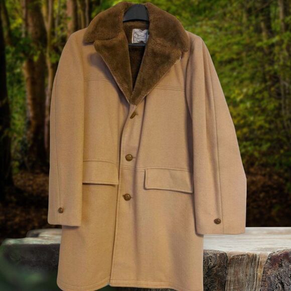 Mens Vagabond Coat Heavy Faux Sherpa Collar Vintage 38