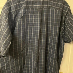 Introducing this stylish Men’s Van Heusen Button Down Shirt in Size XXL. Made with a blend of 65% polyester and 35% cotton, this shirt offers both comfort and durability. Its classic button-down design and timeless color make it a versatile addition to any wardrobe. Whether you're dressing for the office or a casual outing, this shirt is sure to elevate your look. The Size XXL ensures a comfortable fit, while the polyester-cotton blend provides breathability and ease of care. This shirt is in good condition, ready to be your go-to choice for any occasion. Don't miss out on adding this essential piece to your collection!  See included pictures for measurements.