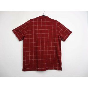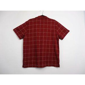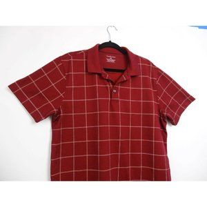 Mens Van Heusen Polo Shirt Large 16 16 1/2 Red/Burgundy Plaid Short Sleeve