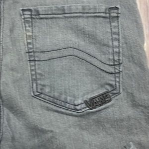 Men’s Vans Gray Jeans. Vans off the wall. Size 20. Straight leg. GUC. Has small spot on front of leg (as shown in pictures) and a spot on the bottom back right leg (also shown in pictures)