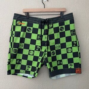 Mens Vans Off The Wall Black Green Mens Board Swim Short Green Checkered Size 38