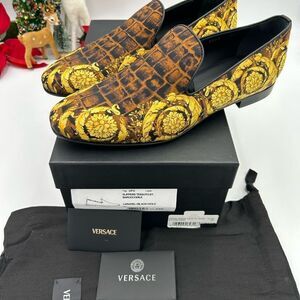 Men’s Versace Barraco print silk loafers size 42 made in Italy