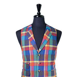 Make a Bold Statement with Multicolor Plaid Vest β Size 42R