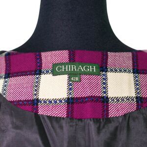 Mens Vest 42R Purple Ivory Plaid Wool Waistcoat Formal Wedding Party Groom Large