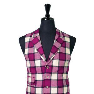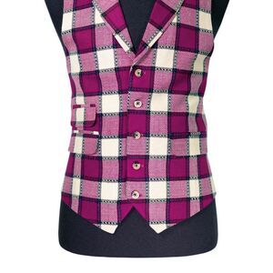 Make a Bold Statement with This Purple & Ivory Plaid Vest β Size 42R