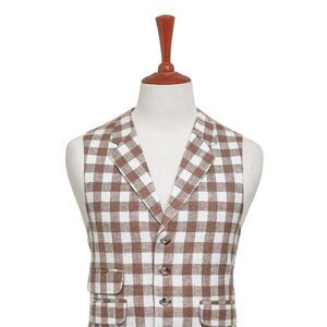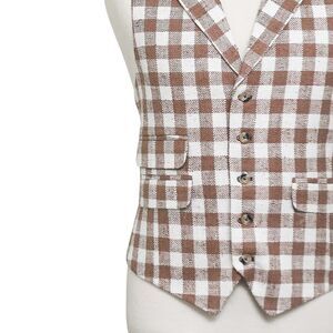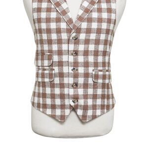 Mens Vest 44R Brown Beige Plaid Check Waistcoat XL Western Casual Preppy Party