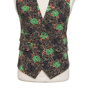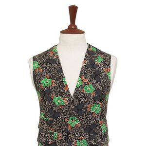 Mens Vest 44R Floral Brown Green Wool Lapel Waistcoat Formal Wedding Groom Party