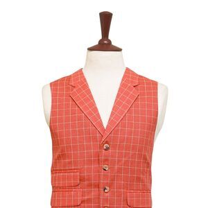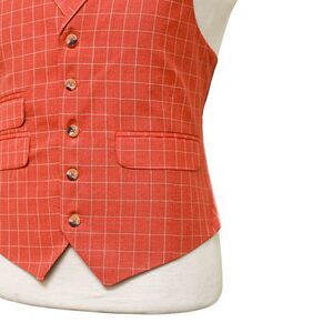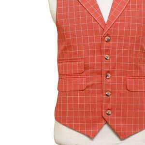 Mens Vest 44R Orange Beige Check Waistcoat XL Formal Wedding Prom Party Groom