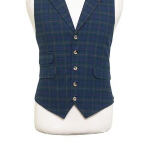 Mens Vest 44R Tartan Plaid Blue Green Red Wool Lapel Waistcoat Formal Wedding
