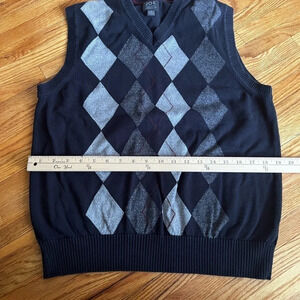 Mens vest, size medium. Colors are navy blue, grey and black. In good used condition, no rips tears or stains.