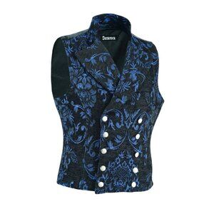Men's Victorian Gentleman's Aristocrat Vest Tapestry Stylish Casual Vest Blue Black