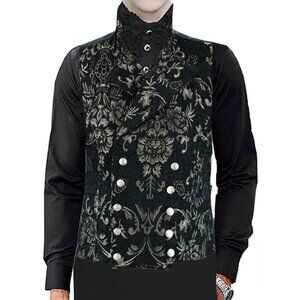 New Brocade Men's Vest Waistcoat Gothic Steampunk Victorian/Western-Reenactment, Comes in 4 Colors. Please make sure about your chest size, if you have not bought our Cloths before, Please our 1-2 size bigger so you get more room in vest when you wear it.