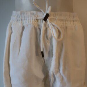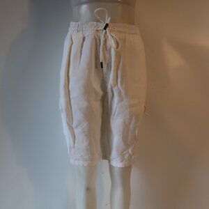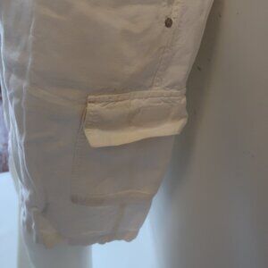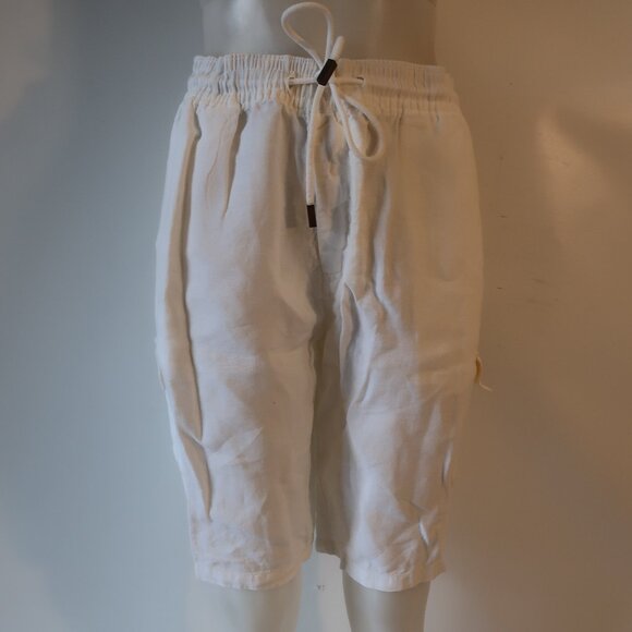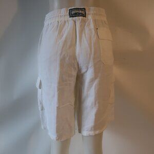 Mens Vilebrequin White 100% Linen Flat Front Drawstring Cargo Shorts 3XL