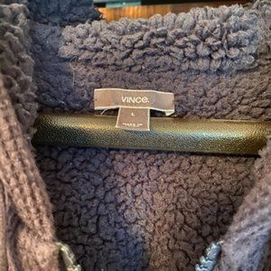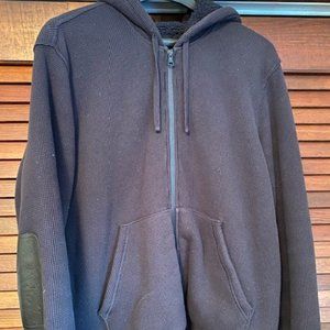 Size Large and in very good condition. Warm material inside and black elbow patches. Purchased at Vince store in Manhattan.