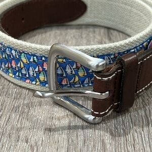 Mens Vineyard Vines 30W Navy Sailboat Pattern Classic Preppy Canvas Leather Belt