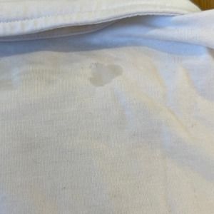 There is some wear around the collar and a stain on the back of the collar. Please refer to pictures for quality. Sold as is.