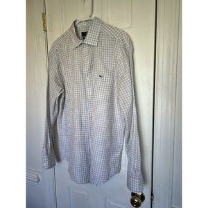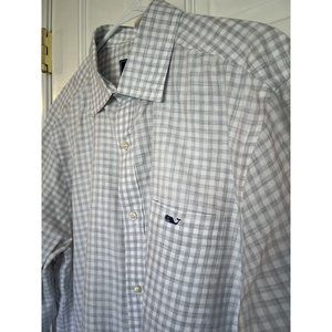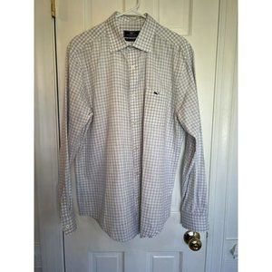 Men’s Vineyard Vines Gray White Gingham Button Down Classic Fit Tucker Shirt M