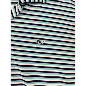 Men's Vineyard Vines Performance Polo Golf Shirt White Green Blue Striped SizeXL