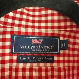 Men's Vineyard Vines Slim Fit Tucker Red & White Gingham Check Button Up Shirt L