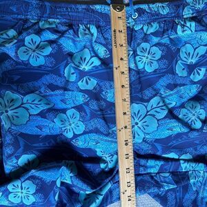 Mens Vineyard Vines XL Swim Trunks Board Shorts Blue Fish Tropical Flowers Liner