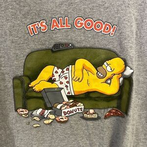 Men's Vintage 2000s Homer Simpson It's All Good Lazy Sunday Couch Gray Tee Large